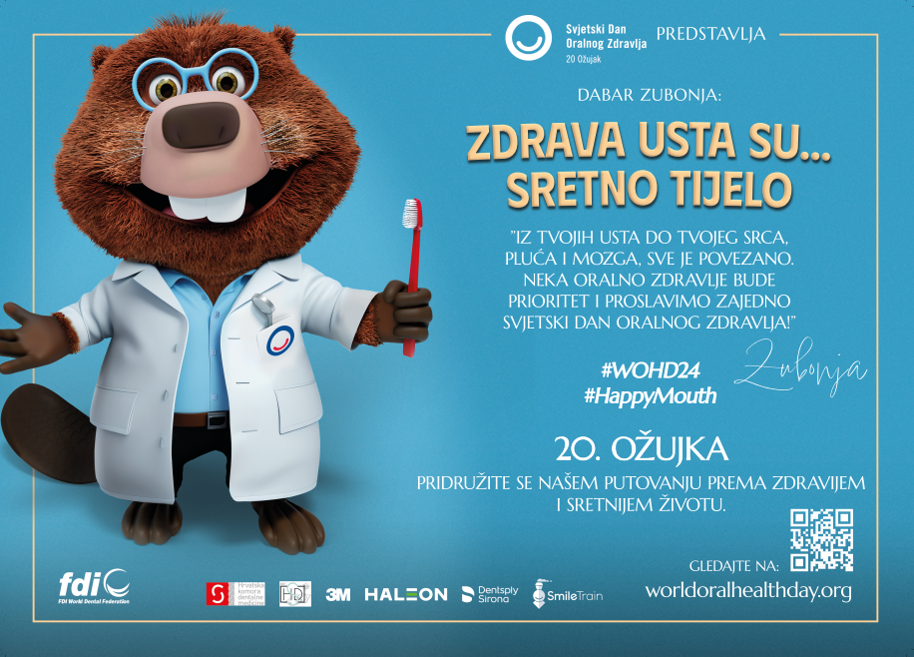 Ovogodišnji Svjetski dan oralnog zdravlja se u cijelom svijetu, pa tako i u Hrvatskoj obilježava pod sloganom “Zdrava usta su… sretno tijelo” (eng. A happy mouth is… a happy body), kojim se želi ukazati na to da je oralno zdravlje važno za sveopće zdravlje.